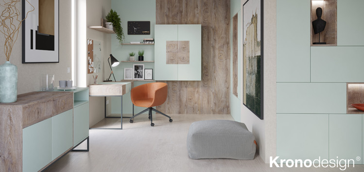 Kronodesign Inspirace se zaměřuje na interiéry různých stylů, protože nabídka dekorů z kolekce Kronodesign je tak široká, že umožňuje vytvořit praktický jakýkoliv styl a interiér. Prvním stylem, na který se v Kronospanu zaměřili, je styl Nordic, v němž je navržen interiér domácí pracovny. Pojem home office u nás během minulého roku zdomácněl tak, jako nikdy předtím a domácí pracovna, či pracovní kout se staly součástí téměř každé domácnosti.