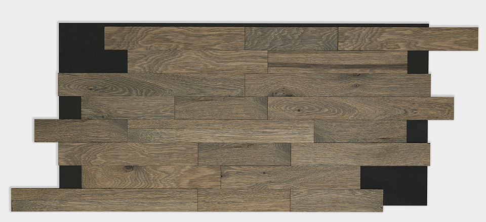 Decospan přichází s novým produktem Astrata – obklad stěn. Jedná se o doplněk ke kolekci Querkus, konkrétně řady Vintage. Základem jsou různě dlouhé a hrubé lamelky s dubovou dýhou, které jsou vyskládány do panelu cca 80*40cm. Právě díky různé velikosti lamelek působí obklad hezky prostorově. Minimální objednací množství je jedna krabice, která obsahuje 3 panely (0,96m2).