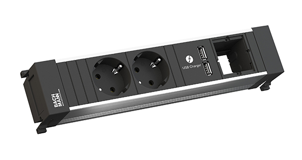 Bachmann díl 916.0514, Zásuvková jednotkaPOWER FRAME, 2xSchuko 1x USB 2nás. nabíječka 1x uživ. modul 0,2m kabel, GST18i3, hliník/černá
