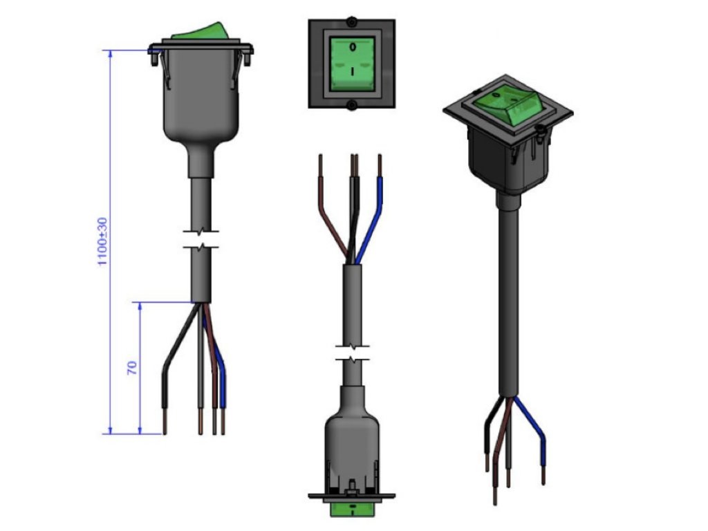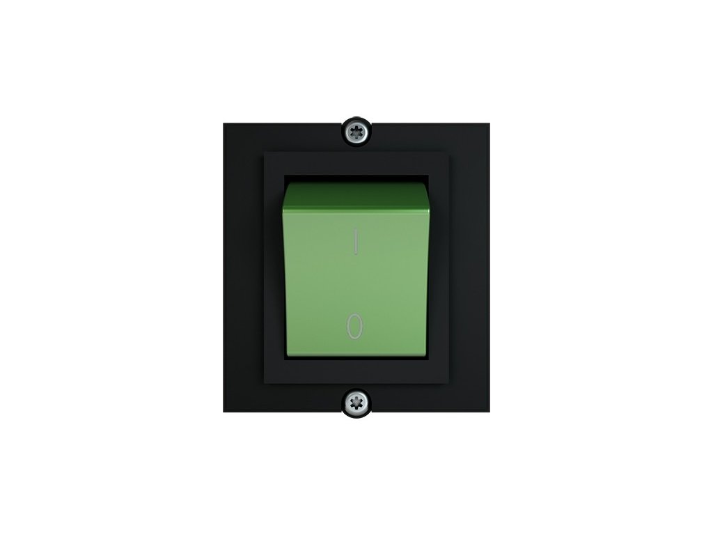 Čelní strana: 2pólový kolébkový vypínač zelený