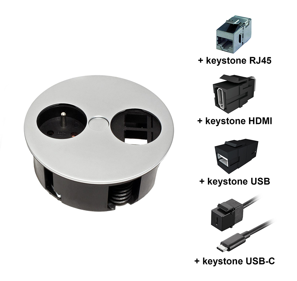 1x zásuvka 230V + 2x volný uživatelský modul (USB - A/C propojovací, RJ45, HDMI) - nutno objednat zvlášť
