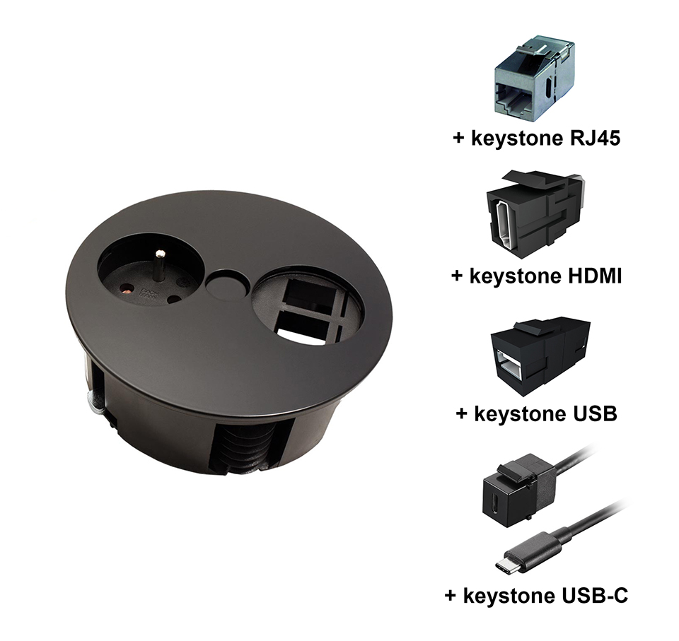 1x zásuvka 230V + 2x volný uživatelský modul (USB - A/C propojovací, RJ45, HDMI) - nutno objednat zvlášť