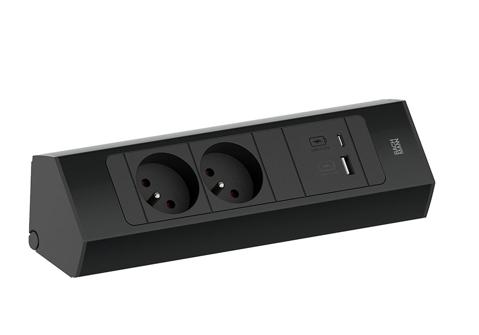 Kování a doplňkový materiál Kancelářské vybavení Kancelářské elektrozásuvky BACHMANN 932.103 Casia 2, 2x230V + 1xUSB A/C, černá RAL9005