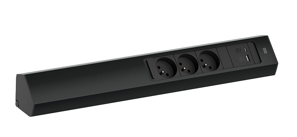 Kování a doplňkový materiál Kancelářské vybavení Kancelářské elektrozásuvky BACHMANN 932.107 Casia 2, 3x230V + 1x USB A/C černá RAL9005