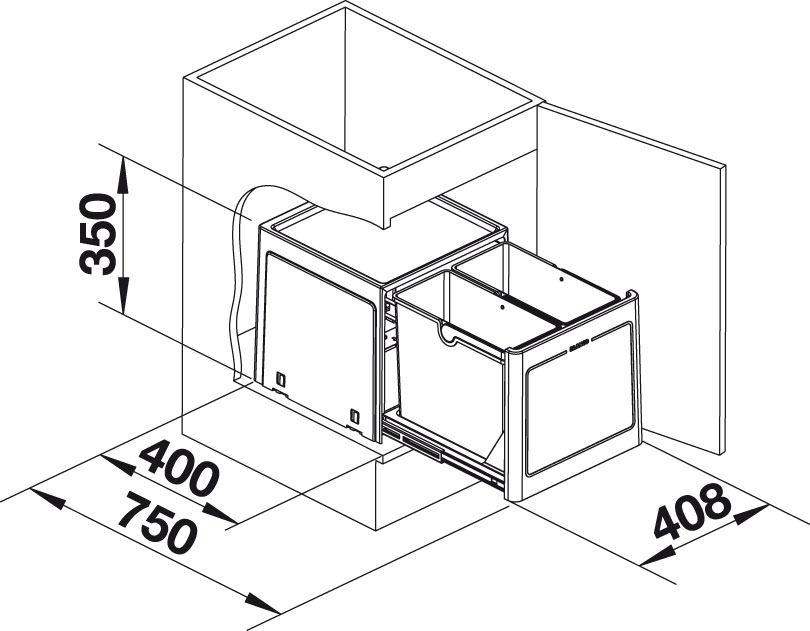 BLANCO 517468 Sorter Select Botton Pro 45/2 Automat výsuv otevřením dvířek 2x13l