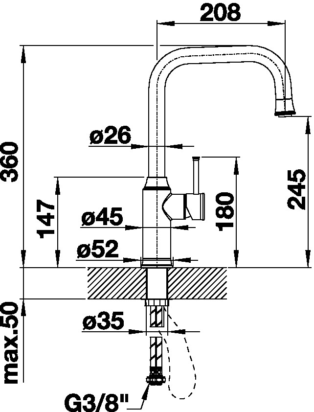 • Pružné připojovací hadice o délce 450 mm a s 3/8“ maticí pro mimořádně snadnou a bezpečnou montáž