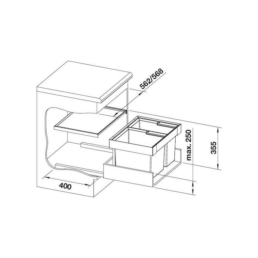 - výška zabudování 355 mm od dna zásuvky, hloubka zabudování 400 mm