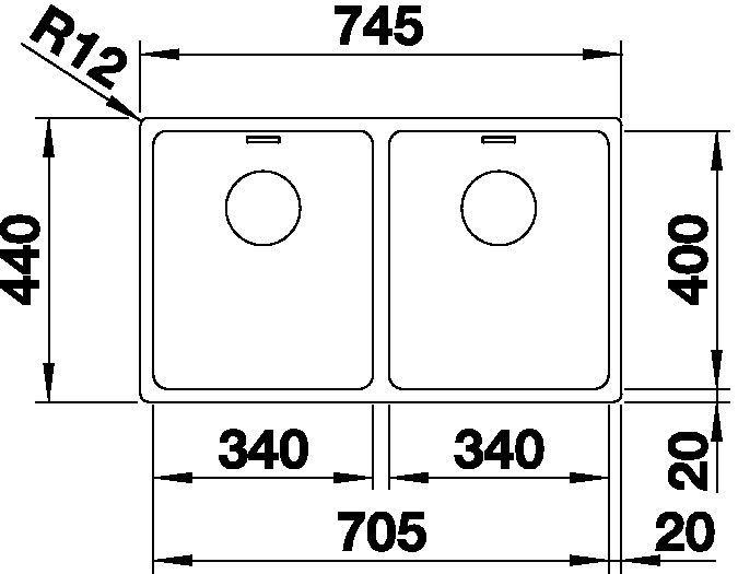 BLANCO 522981 ANDANO 340/340-IF nerez hedvábny lesk InFino bez excentru