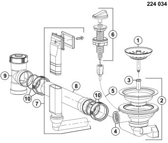 odtoková sada s prostorově úspornou trubkou
