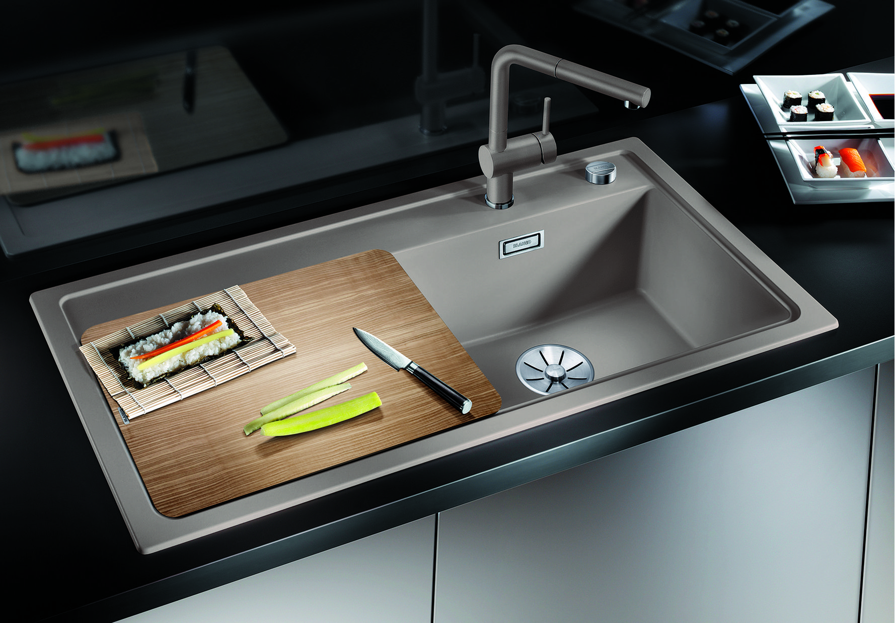 ZENAR XL 6S kávová InFino s excentrem, příslušenství dřevěná krájecí deska dřez vpravo