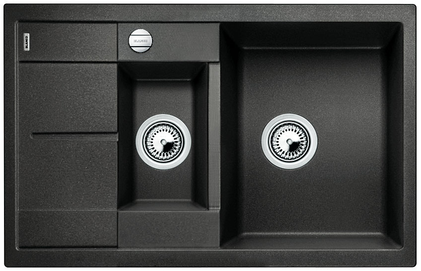 BLANCO 525925 dřez vestavný METRA 6 S Compact černý SILGRANIT® PuraDur®, s excentrem, dřez 2x3 1" s odkapem, oboustranný, bez příslušenství