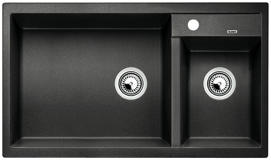 BLANCO 525936 dřez vestavný METRA 9 černý SILGRANIT® PuraDur®, bez excentru, dvoudřez 2x3 1", hlavní dřez vlevo, bez příslušenství