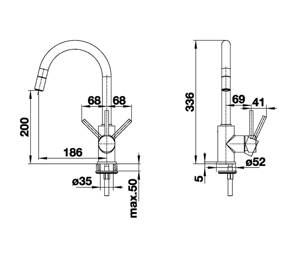- Pružné připojovací hadice o délce 450 mm a s 3/8‘‘ maticí pro mimořádně snadnou a bezpečnou montáž