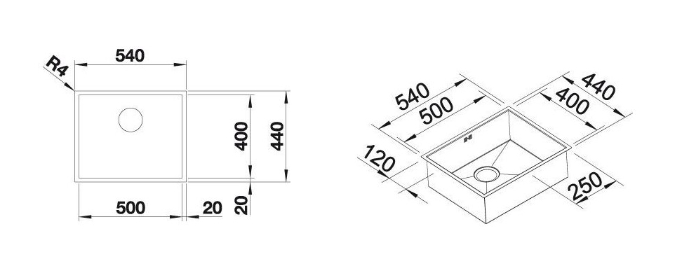 BLANCO 526243 dřez ZEROX 500-U DXD InFino bez excentru nerez Dark Steel