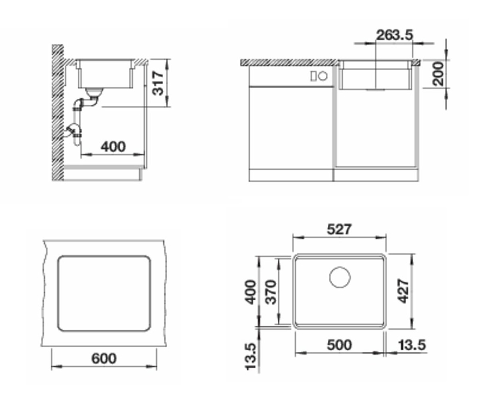 BLANCO 526346 Dřez Etagon 500-F InFino bez excentru Silgranit bílá