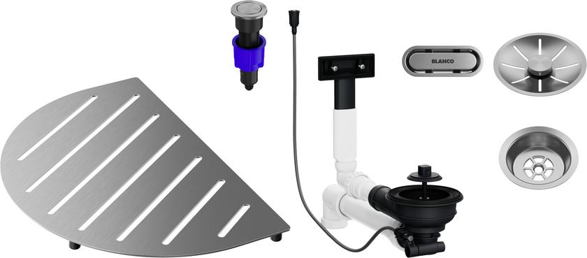 BLANCO 527993 Příslušenství dřezu Oovalon Components - nerez kartáčovaná, odtoková armatura vč. odkapové desky, InFino ventilu s PushControl III