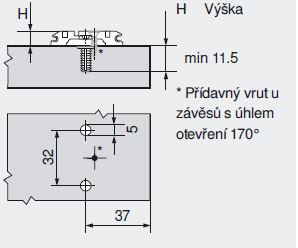 Podložka křížová s předmontovanými hmoždinkami o 3mm zvýšená. Přednastavené vruty se zašroubují do hmoždinek, které roztrhnou a tím se podložka upevní. Jedná se nejpevnější možné spojení kování+DTD. Tento druh spojení hledejte u kování firmy BLUM pod názvem EXPANDO.