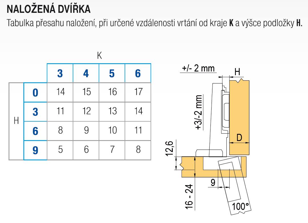 Závěs s úhlem otevření 100°, miska k našroubování. Základní podložky: ostatní viz. katalog Blum vrut 173L6100 - 12306, euro 173L8100 - 12318, štelování excentrem 173H7100 - 12340, expando 174E6100.01 - 12302.