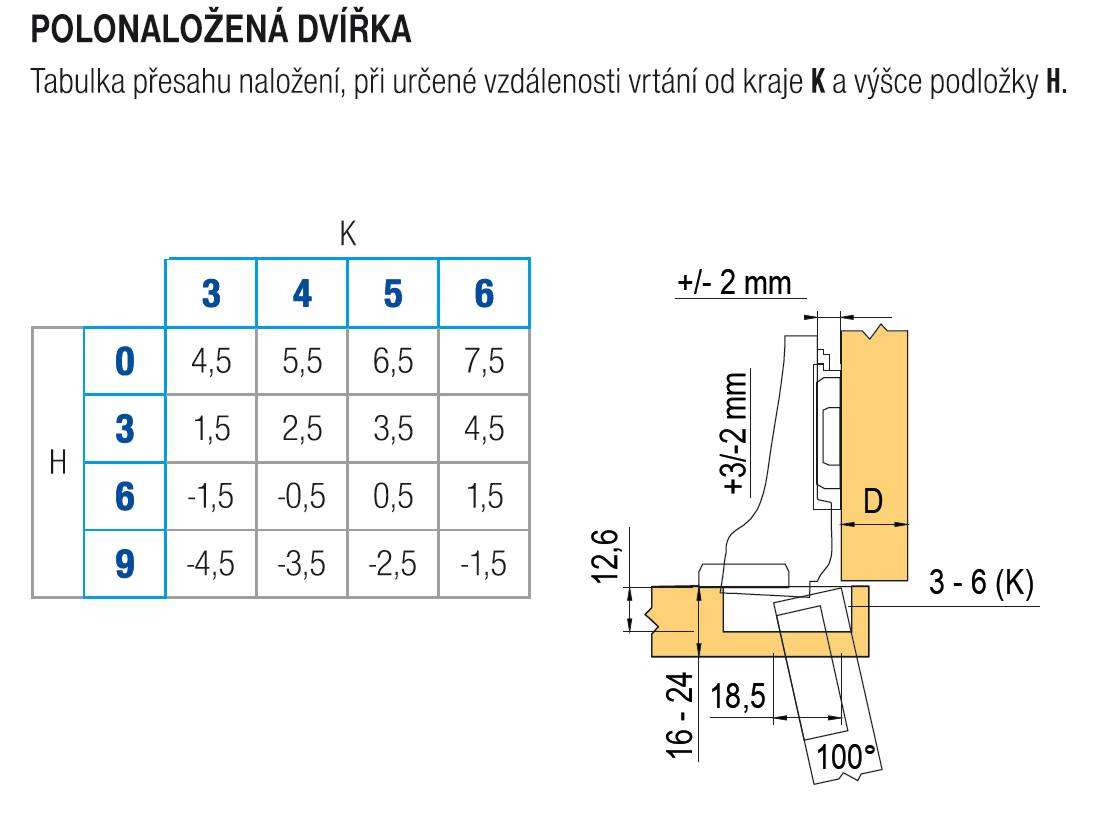 Závěs s úhlem otevření 100°, miska k našroubování. Základní podložky: ostatní viz. katalog Blum vrut 173L6100 - 12306, euro 173L8100 - 12318, štelování excentrem 173H7100 - 12340, expando 174E6100.01 - 12302.