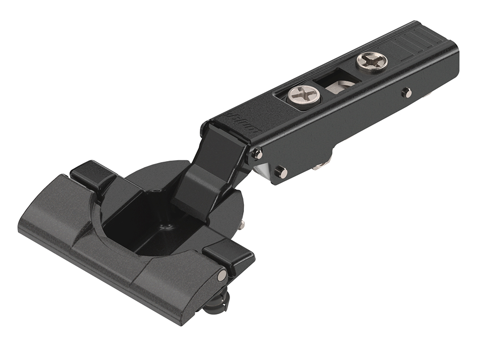 Naložený závěs bez pružiny pro Tip-on, úhel otevření 110°, montáž misky Inserta (rychloupínací). Stranové seřízení +/- 2mm, hloubkové seřízení +3/-2mm pomocí excentru. Barva černá Onyx.