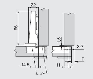 Pant určený pro silné a profilované dveře, úhel otevření 95°, s integrovaným Blumotion ( s možností deaktivace ). NELZE kombinovat na jedny dvířka s 12060 ( 71T9550 ). Podložky jsou shodné se stávajícími Blum Clip - např.12312.