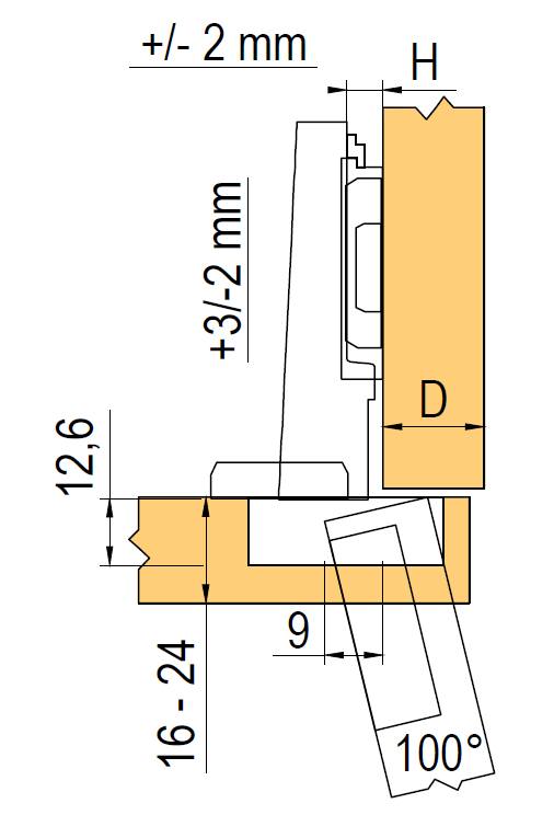 Závěs s úhlem otevření 100°, miska s předmontovanými hmoždinkami (EXPANDO) Montáž a demontáž dvířek na korpusu bez nářadí. Možno kombinovat s tlumičem dorazu BLUMOTION k naklapnutí na ramínko závěsu 973A0500 - 12391. Základní podložky: ostatní viz. katalog Blum expando 174E6100.01 - 12302.