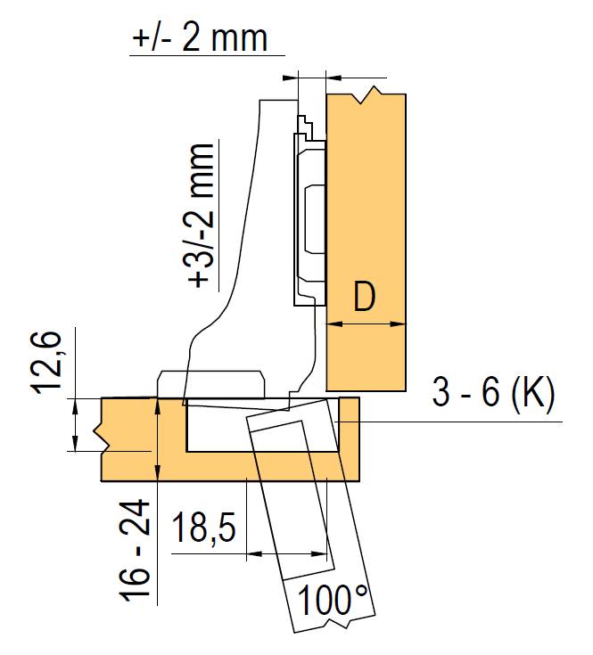 Závěs s předmontovanými hmoždinkami. Možno kombinovat s tlumičem dorazu BLUMOTION k naklapnutí na ramínko závěsu 973A0600 - 12385. Základní podložky: ostatní viz. katalog Blum expando 174E6100.01 - 12302.