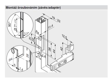 POZOR - závěs má jiné frézování rámečku než standardní závěsy pro dvířko s úzkým alu rámečkem.
