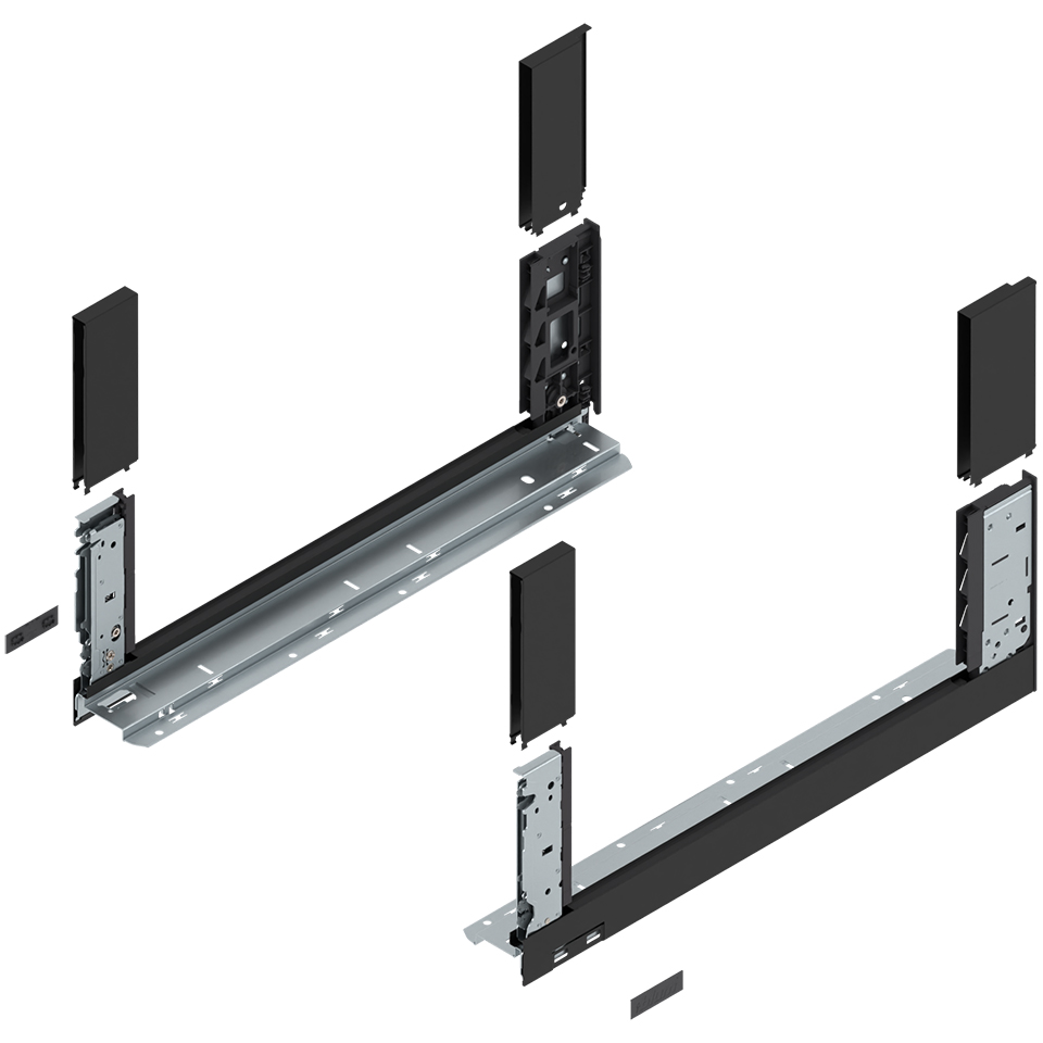 Bočnice LEGRABOX. Pro čelní zásuvku čelní příchyt ZF7C7002 (227547) vrut nebo ZF7C70E2 (227548 ) EXPANDO. Příchyt zad ZB7C000S. Výsuv 750.3501S 40kg (349904) pro verzi BLUMOTION/TOB nebo 750.3501T (227422) pro verzi TIP-ON.