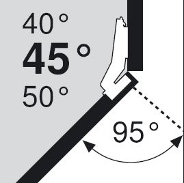 Úhlový závěs +45° III. Úhel otevření 95°. Tlumič dorazu BLUMOTION k zavrtání na straně závěsu 970A1002 - 12398. Základní podložky: ostatní viz. katalog Blum. štelování excentrem 175H9160 - 12319.