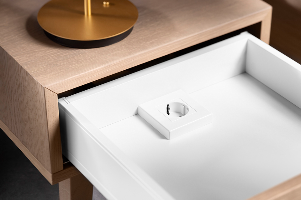 Amperos AC je elegantní a praktické řešení pro napájení elektrických spotřebičů v nábytku. Díky vestavěné zásuvce lze elektrické spotřebiče snadno schovat do zásuvek nebo policových výsuvů, aniž by docházelo k plýtvání místem. Pracovní plochy tak zůstávají volné a obvyklá změť kabelů je minulostí.