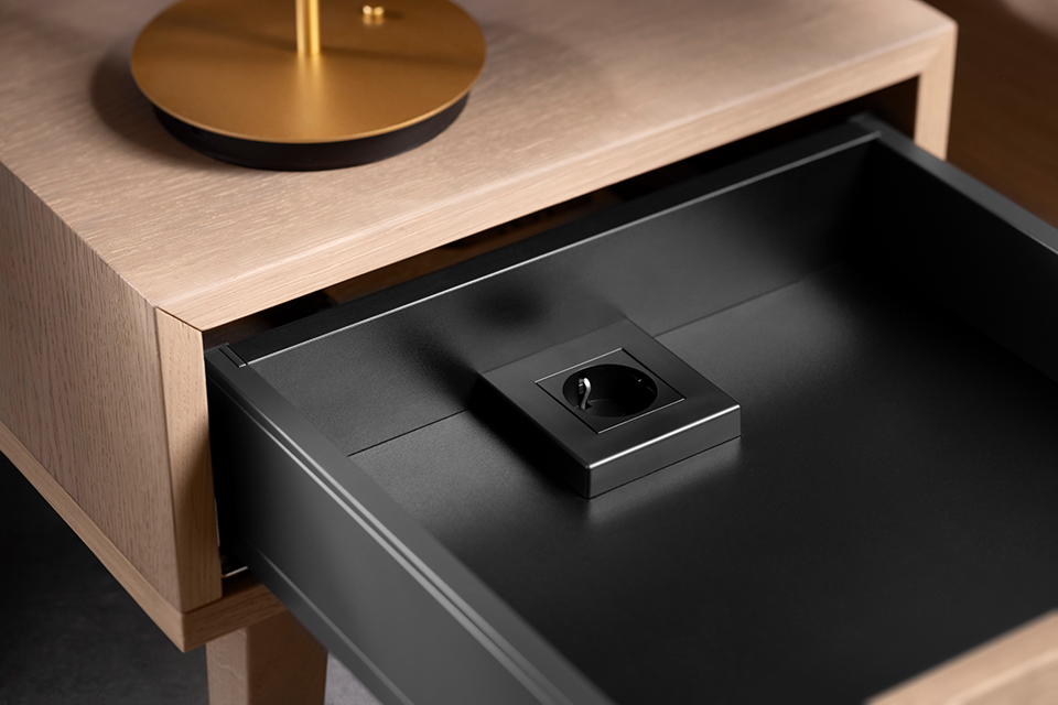 Amperos AC je elegantní a praktické řešení pro napájení elektrických spotřebičů v nábytku. Díky vestavěné zásuvce lze elektrické spotřebiče snadno schovat do zásuvek nebo policových výsuvů, aniž by docházelo k plýtvání místem. Pracovní plochy tak zůstávají volné a obvyklá změť kabelů je minulostí.