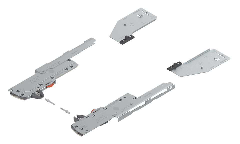 Složení: 2x jednotka TIP-ON BLUMOTION 2x unašeč TIP-ON BLUMOTION 2x synchronizační adaptér Od šířky LW větší než 314mm, doplň o synchronizační tyč. Kombinovatelné pouze s korpusovou lištou pro 40 kg v délce 350-600mm. Hmotnost výsuvu 15-40 kg.