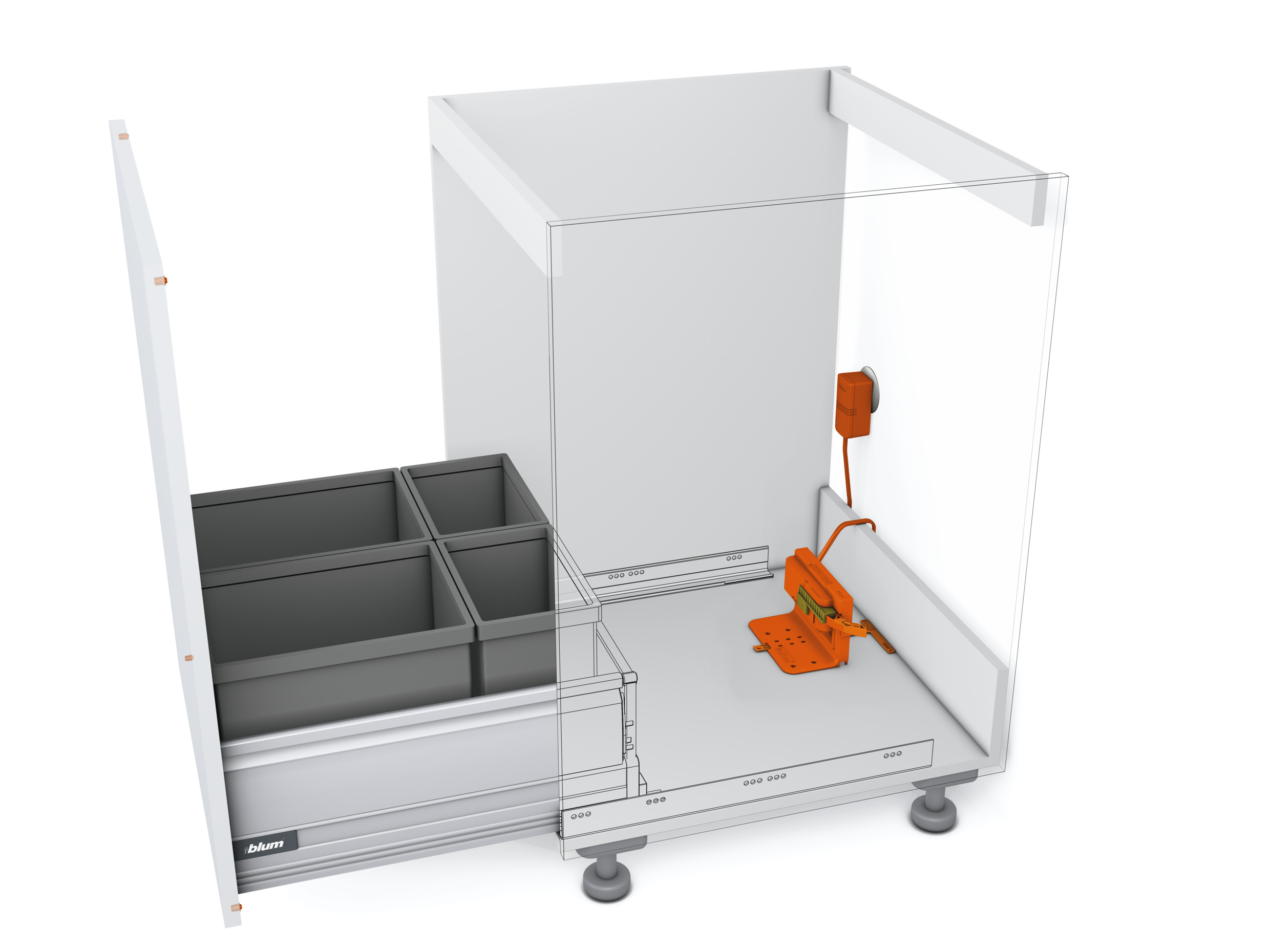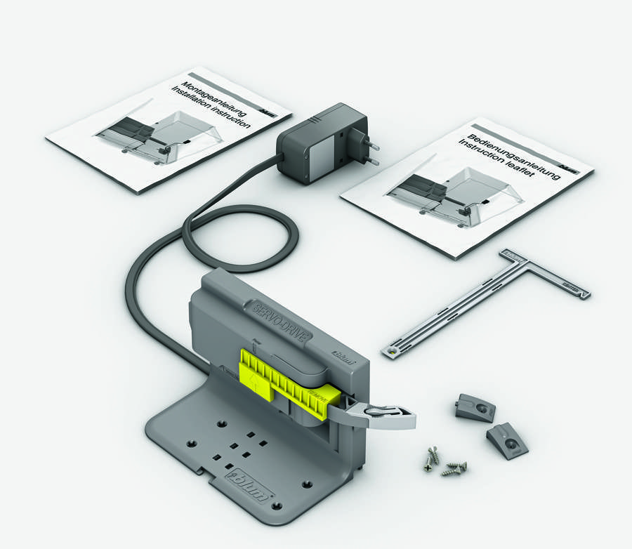 Kompletní sada pro 1 zásuvku. Využití zejména pro zásuvku s odpadkovým košem. Sada obsahuje: držák servojednotky, montážní vodítko, pohonná jedotka s transportní/montážní pojistkou, transportní kryt (= distancní držák), ochrana pred kapající vodou, konektor pro napojení sítového, adaptéru, adaptér a kabel 110cm, montážní pomucka, distancní dorazy, vruty, návod pro montáž, návod k obsluze. POZOR: Na tuto sadu (trafo) již nejde napojit další jednotky!