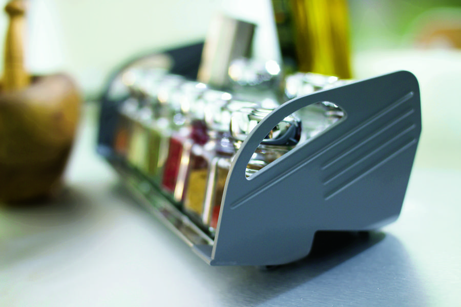 Držák na kořenky do zásuvky. Šíře 400mm. Nerez+plast. Uchycení pomocí příchytů přišroubovaných do dna zásuvky.