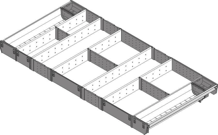 Sada systému Orga-Line pro zásuvky 1000mm šíře a 650mm hloubka. Využití v zóně "Mytí, příprava a vaření".