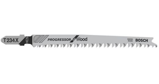 - Pilový list se střídavými zuby T 234 X Progressor for Wood při použití se silným i tenkým dřevem zanechává čisté přímé řezy ve dřevu