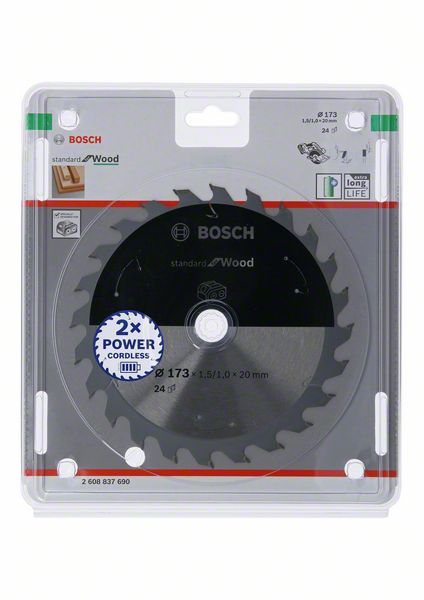 BOSCH 2608837690 Pilový kotouč Standard for Wood pro AKU pily 173×1,5×20mm, 24