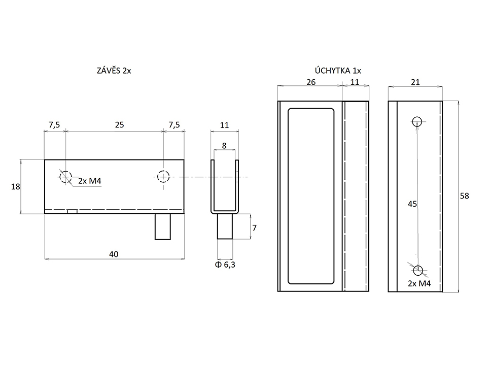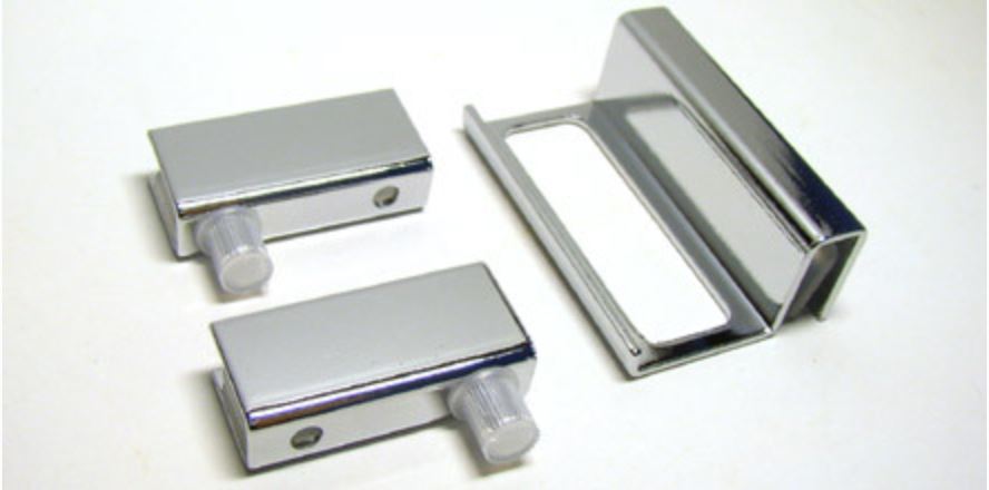 Sada dvou čípkových závěsů pro skleněná dvířka bez rámu s úchytkou. Pro sklo max. tloušťky 5mm