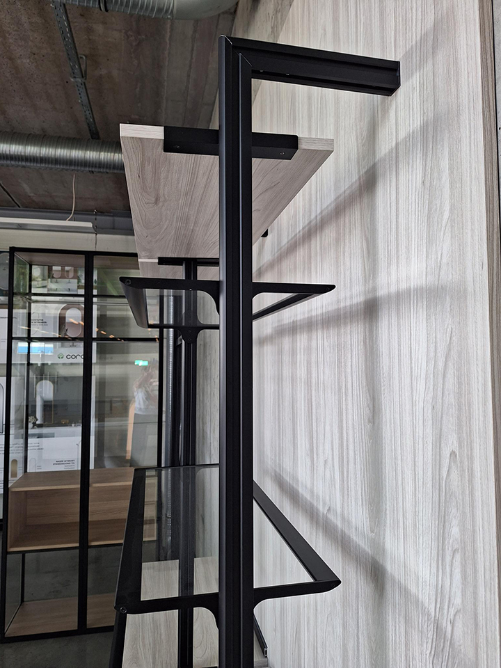 Hliníková konstrukce celého systému byla navržena s ohledem na využití prostoru a zvýraznění elegance.