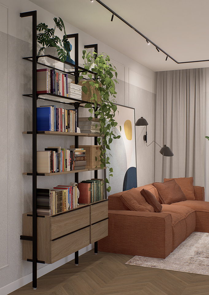 Obývací pokoj, předsíň, šatna nebo kancelář, tady všude vám tento systém umožní optimalizovat prostor a dobře využít každý metr čtvereční.
