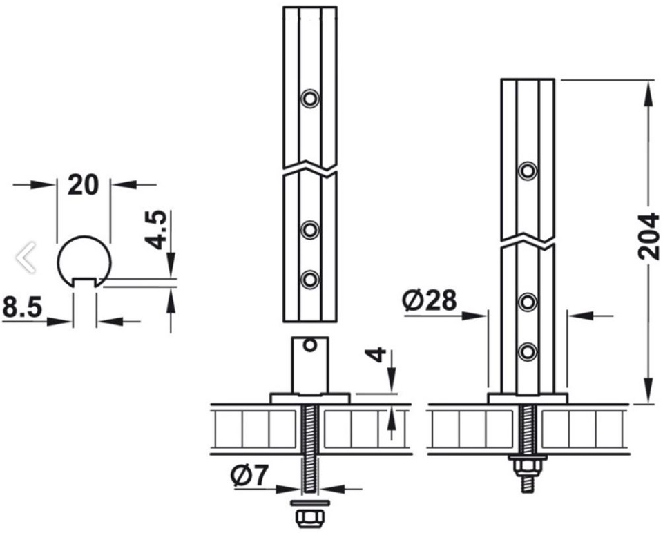 Pokud máte varnou desku na ostrůvku, jsou tyto držáky se sklem vhodnou ochranou proti znečišťování okolí při vaření. Držáky se montují skrz pracovní desku pomocí závitové tyče a matice M6, která je součástí balení v délce 60 mm a 120 mm. Sklo se usazuje do drážky a je zajištěno silikonovým páskem. Sklo není zahrnuto v ceně, objednává se na míru zvlášť. Rozměry skla: výška 200 mm, tloušťka 8 mm, délka libovolná. Materiál: zinkový odlitek zamak s povrchovou úpravou imitující broušenou nerez Rozměry držáku: stojka průměr: 20mm, patka průměr: 28mm, celková výška 204mm