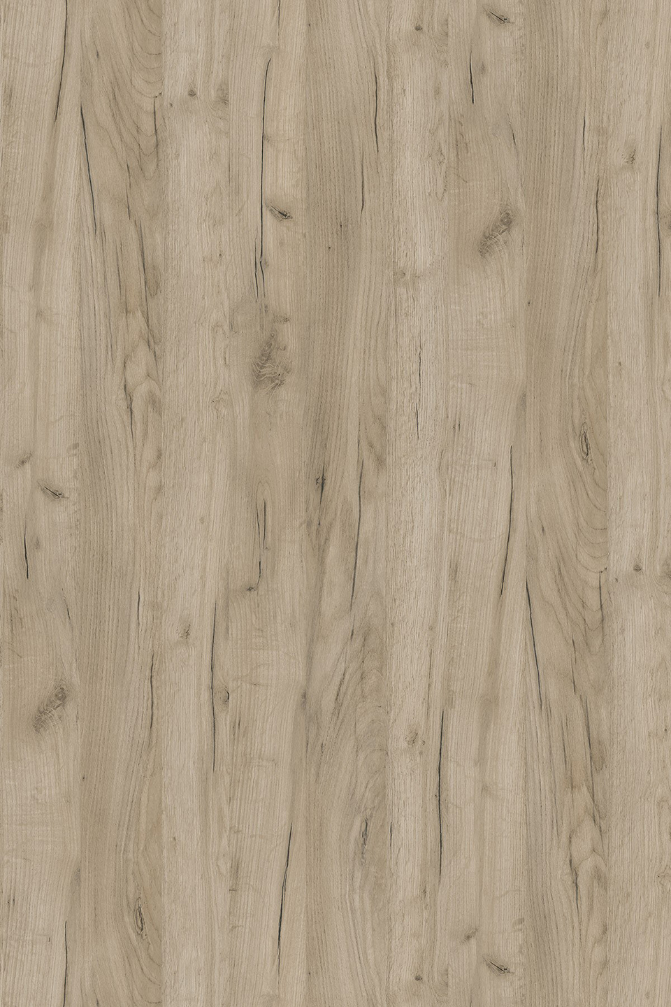 Dřevotřísková deska oboustranně laminovaná v dekoru K002 Šedý dub Craft se strukturou PW Pure Wood na nosiči P2. Standardní dřevotřísková deska dle EN 312 určená do suchého prostředí, objemová hmotnost 600 -750kg/m3. Výrobce: KRONOSPAN CR spol. s r. o., Jihlava.