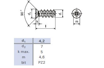 Eurošroub 6,3x11/7 zápustná hlava 7mm PZ2 zinek bílý
