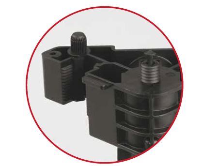 Nožka má 3 kolíky pro rychlou montáž naražením. Středový kolík má průměr 12 mm a po naražení současně dojde k roztažení kolíku pomocí vloženého čepu, čímž se zajistí lepší pevnost spojení. Další dva kolíky se zpětným stromečkovým zajištěním mají průměru 10 mm.