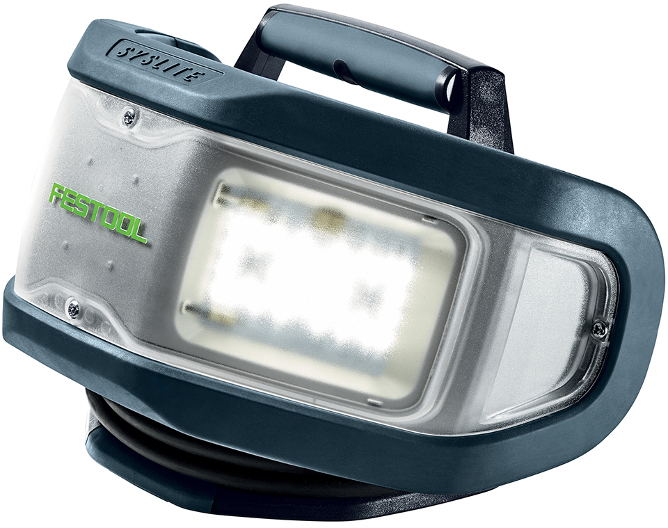 - Flexibilní možnosti použití: postavená na podlaze nebo na ploše, na stativu Festool nebo libovolně zavěšená na háku díky možnosti zavěšení na zadní straně SYSLITE DUO