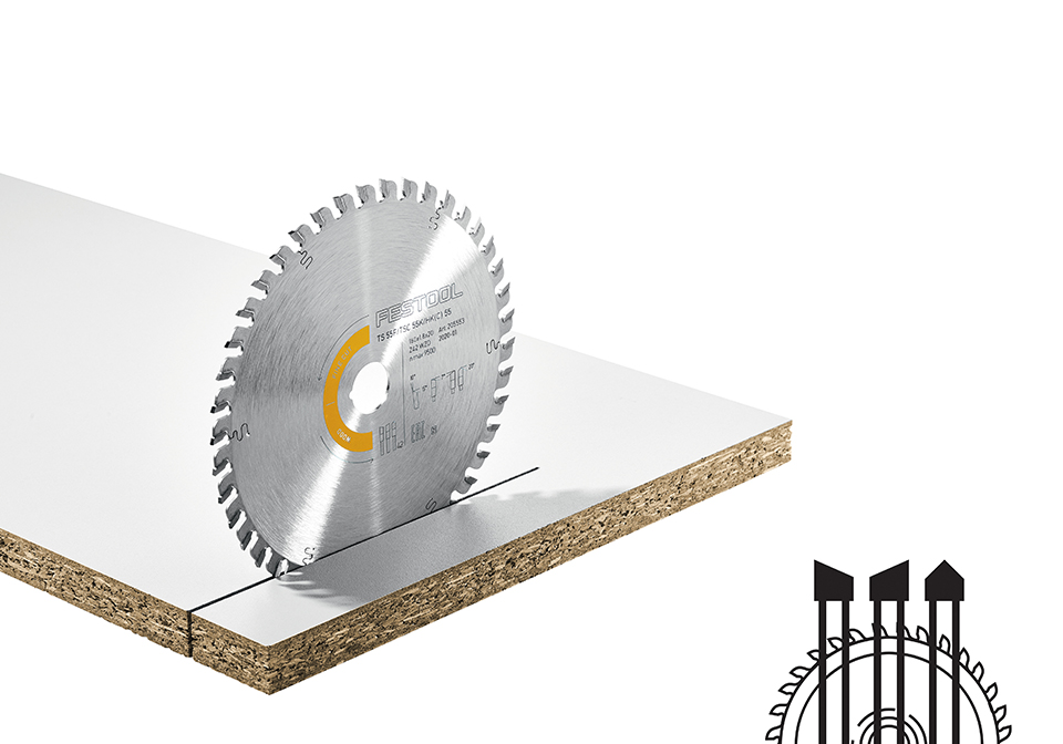 - na dýhované a povrstvené desky, masivní dřevo, desky MDF - jemný řez