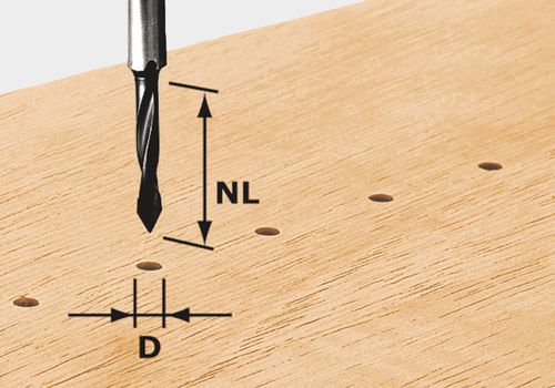 - Provrtávače pro řady otvorů, s dlouhým vrtacím hrotem z tvrdokovu vhodné pro provrtávání desek