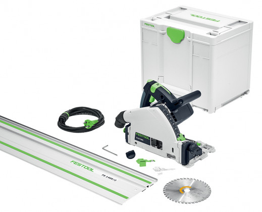pilový kotouč s jemnými zuby ze slinutého karbidu WD42, chránič proti otřepům, průzor, klíč na vnitřní šestihran vel. 5, Systainer SYS3 M 337, vodicí lišta FS 1400/2, v kartonu