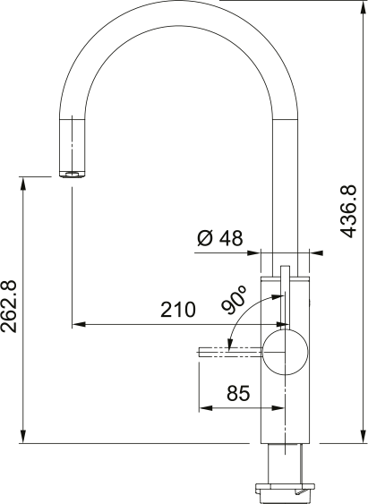 Bez sprchy. Ovládací páčka na straně. Otočná 180°